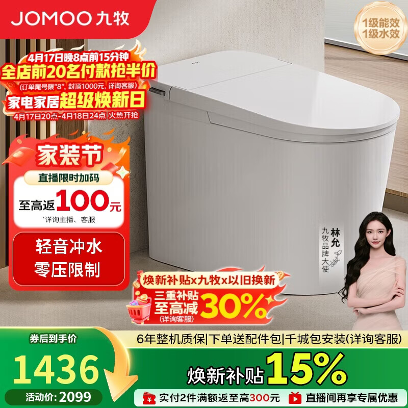 九牧(JOMOO)轻智能马桶无水压限制轻音冲脚感冲SQ6451-SA-CJM305免费送装
