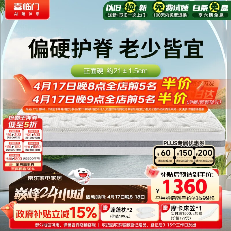 喜临门千帆黄麻床垫 抗菌防螨独袋弹簧床垫 护脊透气席梦思 1.5x2米偏硬