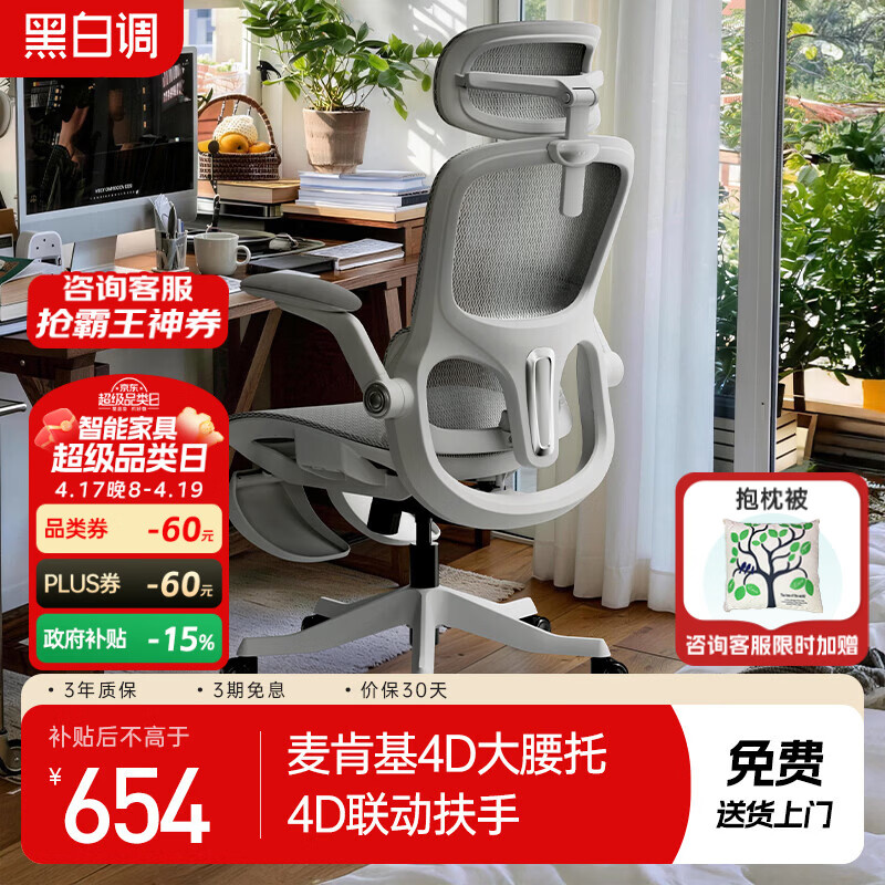 黑白调P2Pro二代人体工学椅电脑椅办公椅电竞椅子人工力学座椅4D腰托