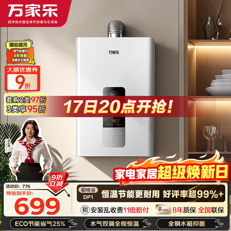 万家乐【超暖浴DP1(F)·金榜爆品】12升天然气智能变升节能速热精准恒温防冻以旧换新8年包修燃气热水器