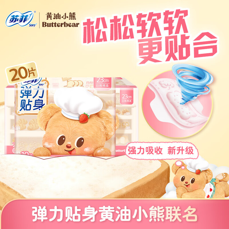 苏菲【黄油小熊联名】卫生巾夜用超熟睡420柔棉感量大姨妈巾旗舰店 黄油小熊 230mm 20片