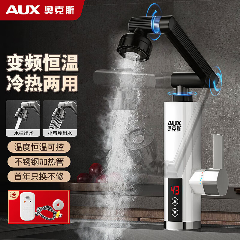 奥克斯(AUX)电热水龙头热水器加热水龙头快速热水变频恒温厨房下进水 【变频恒温】雪山白+升级机械臂+漏保插头