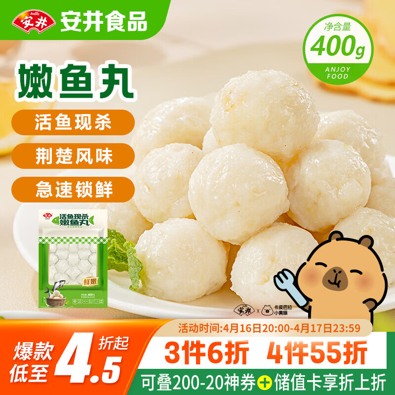 安井活鱼现杀嫩鱼丸 400g 鱼糜含量≥65% 火锅关东煮麻辣烫丸料食材