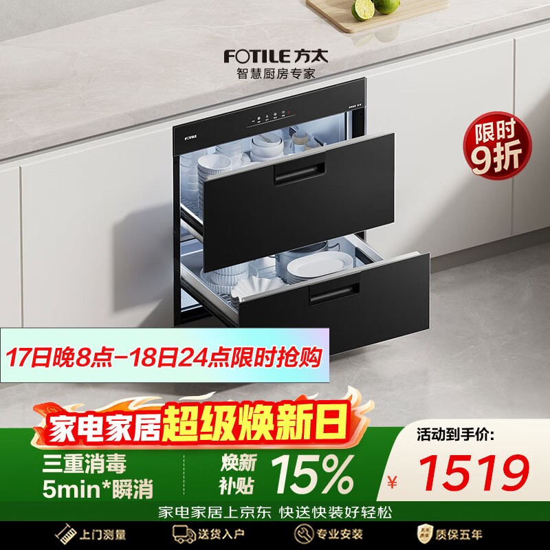 方太【消毒柜嵌入式J55E】110L大容量双层 家用消毒碗柜 5分钟瞬消 二星级三重组合消毒