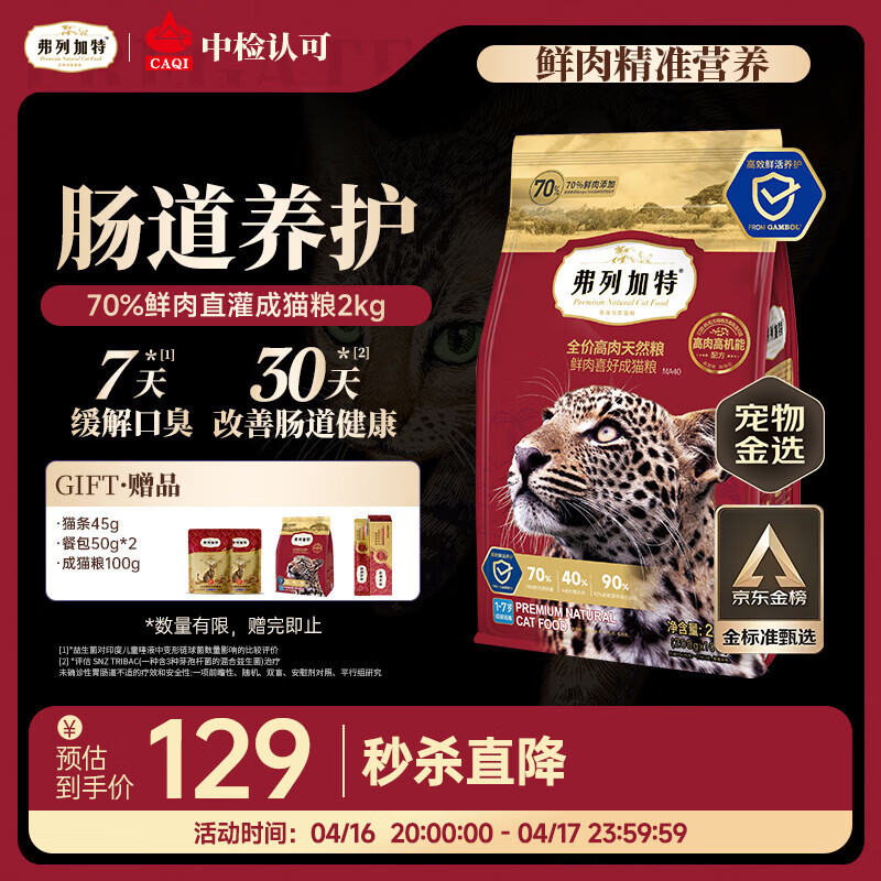 弗列加特猫粮 全价鲜肉天然粮 肠道养护配方 成猫猫粮鸡肉2kg【宠物金选】