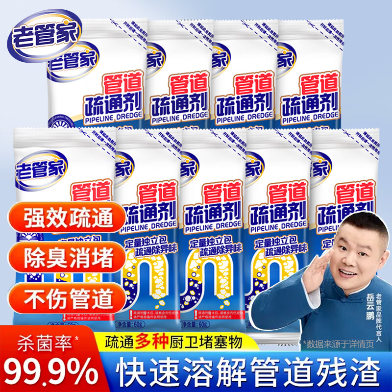 老管家管道疏通剂强力溶解厨房管道油污粉马桶堵塞地漏除臭去飞虫 60g*9袋【性价比囤货】