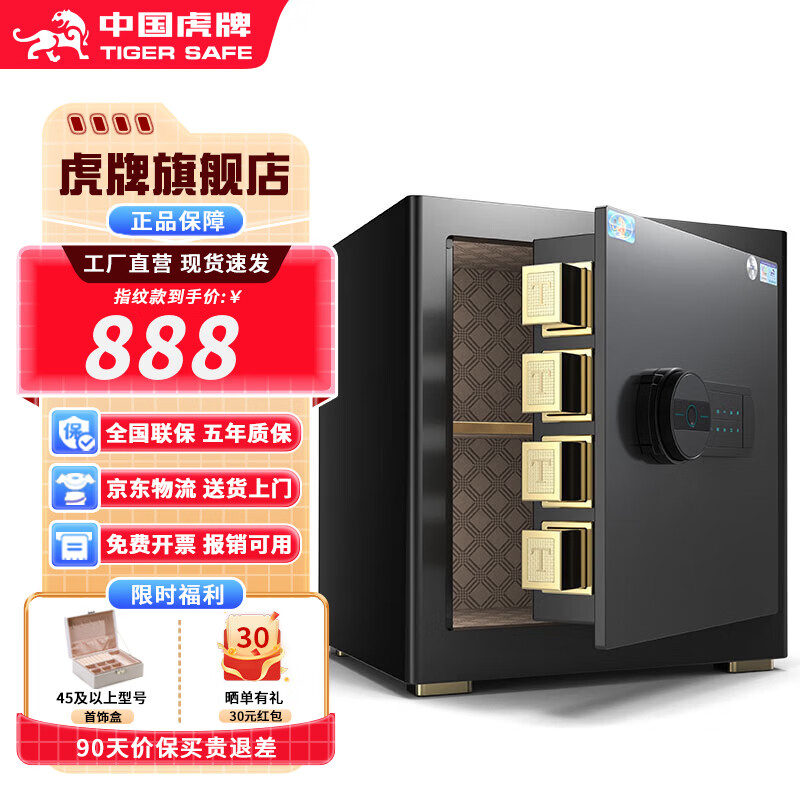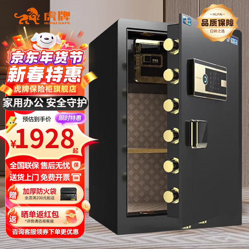 虎牌保险柜家用小型保管箱指纹密码WIFI办公财务专用保险柜全钢防盗可入墙保险箱 【CSP国标认证】70cm黑色 指纹款(钥匙+密码+指纹)