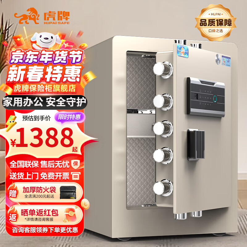 虎牌保险柜家用小型保管箱指纹密码WIFI办公财务专用保险柜全钢防盗可入墙保险箱 【CSP国标认证】70cm咖色 WIFI款(密码+指纹+远程开启)