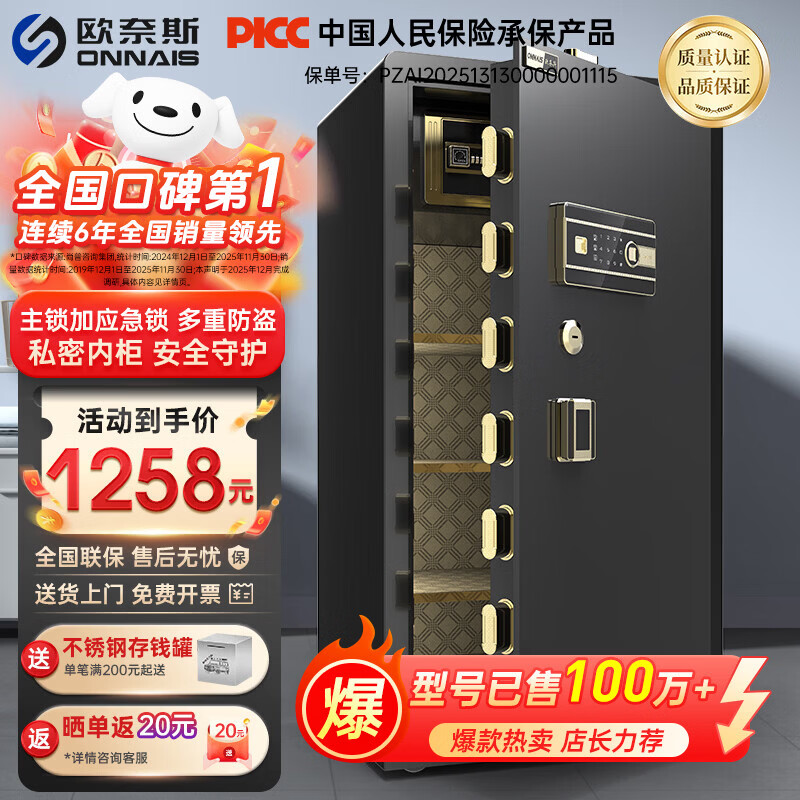 欧奈斯ONNAIS保险柜家用防盗防搬走小型保险箱办公室防火智能床头柜一体保管箱隐形内嵌入墙衣柜保险柜 1.2米尊贵黑指纹密码(私密内柜)
