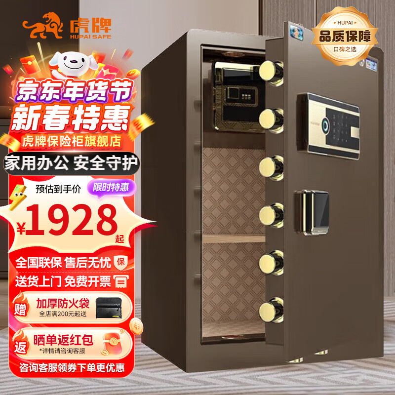 虎牌保险柜家用小型保管箱指纹密码WIFI办公财务专用保险柜全钢防盗可入墙保险箱 【CSP国标认证】80cm咖色 密码款(钥匙+密码)