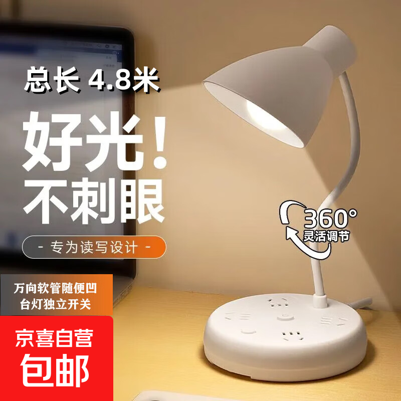 【京东物流】台灯插座插电小夜灯可更换灯泡卧室夜用阅读灯LED夜间照明灯床头灯 可更换灯泡(4插位无USB)4.8米