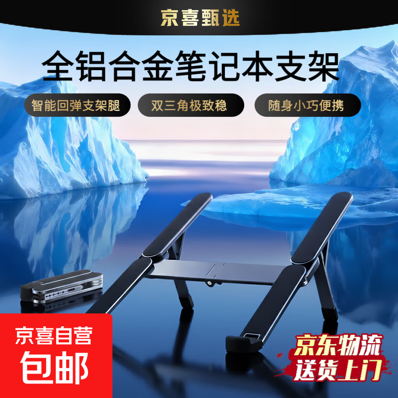 【JD快递】笔记本电脑支架便携折叠铝合金悬空升降散热器平板支架立式增高架 新升级 深空灰 | 智能回弹 | 全铝合金