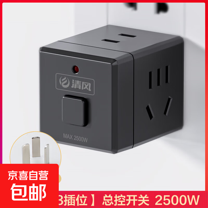 插座智能一转多魔方插座无线usb多功能插排家用宿舍大功率带线 无线 3位 黑色 总控开关