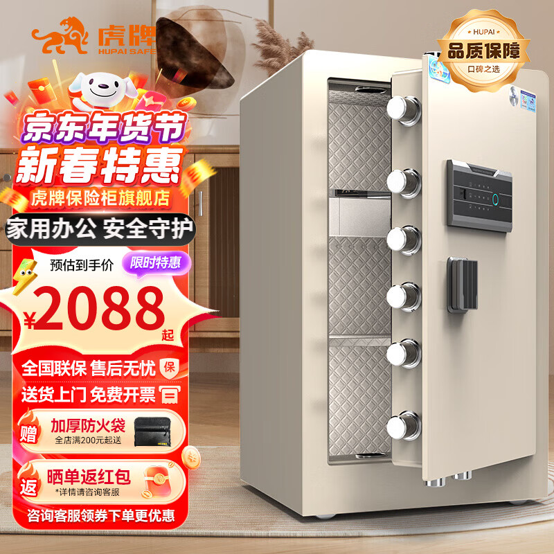 虎牌保险柜家用小型保管箱指纹密码WIFI办公财务专用保险柜全钢防盗可入墙保险箱 【CSP国标认证】80cm咖色 指纹款(钥匙+密码+指纹)