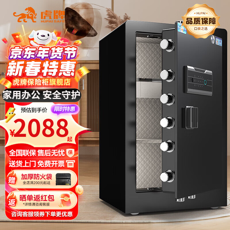 虎牌保险柜家用小型保管箱指纹密码WIFI办公财务专用保险柜全钢防盗可入墙保险箱 【CSP国标认证】80cm黑色 指纹款(钥匙+密码+指纹)