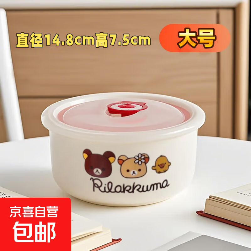 保鲜碗陶瓷带盖上班族便当盒微波炉饭盒冰箱收纳盒泡面汤碗储物碗 可爱小熊【大号】