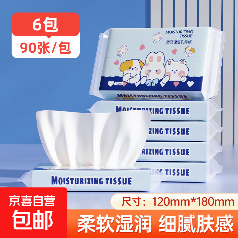 蓝漂萌宠乳霜纸婴儿保湿纸30抽加厚云柔巾柔纸巾鼻炎不泛红感冒纸 3层 30抽*6包