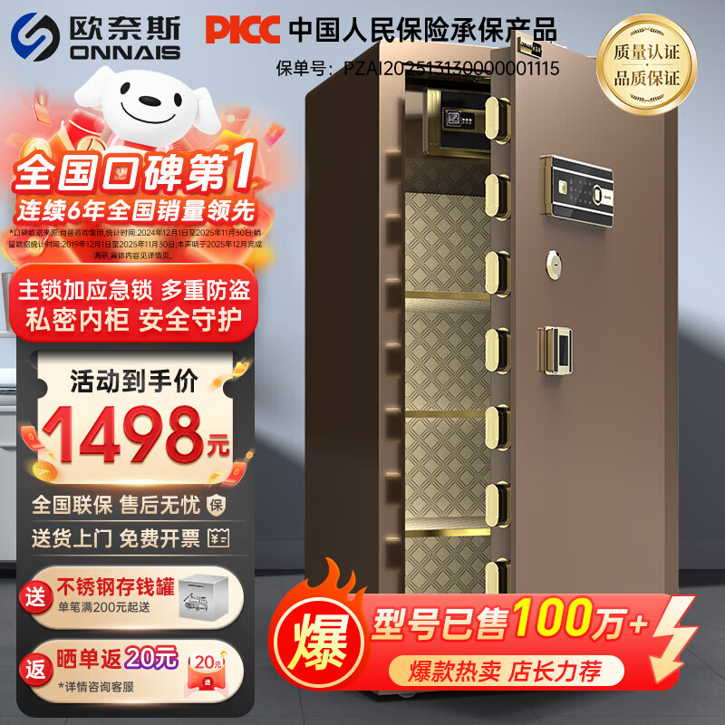 欧奈斯ONNAIS保险柜家用防盗防搬走小型保险箱办公室防火智能床头柜一体保管箱隐形内嵌入墙衣柜保险柜 1.5米咖啡金指纹密码(私密内柜)