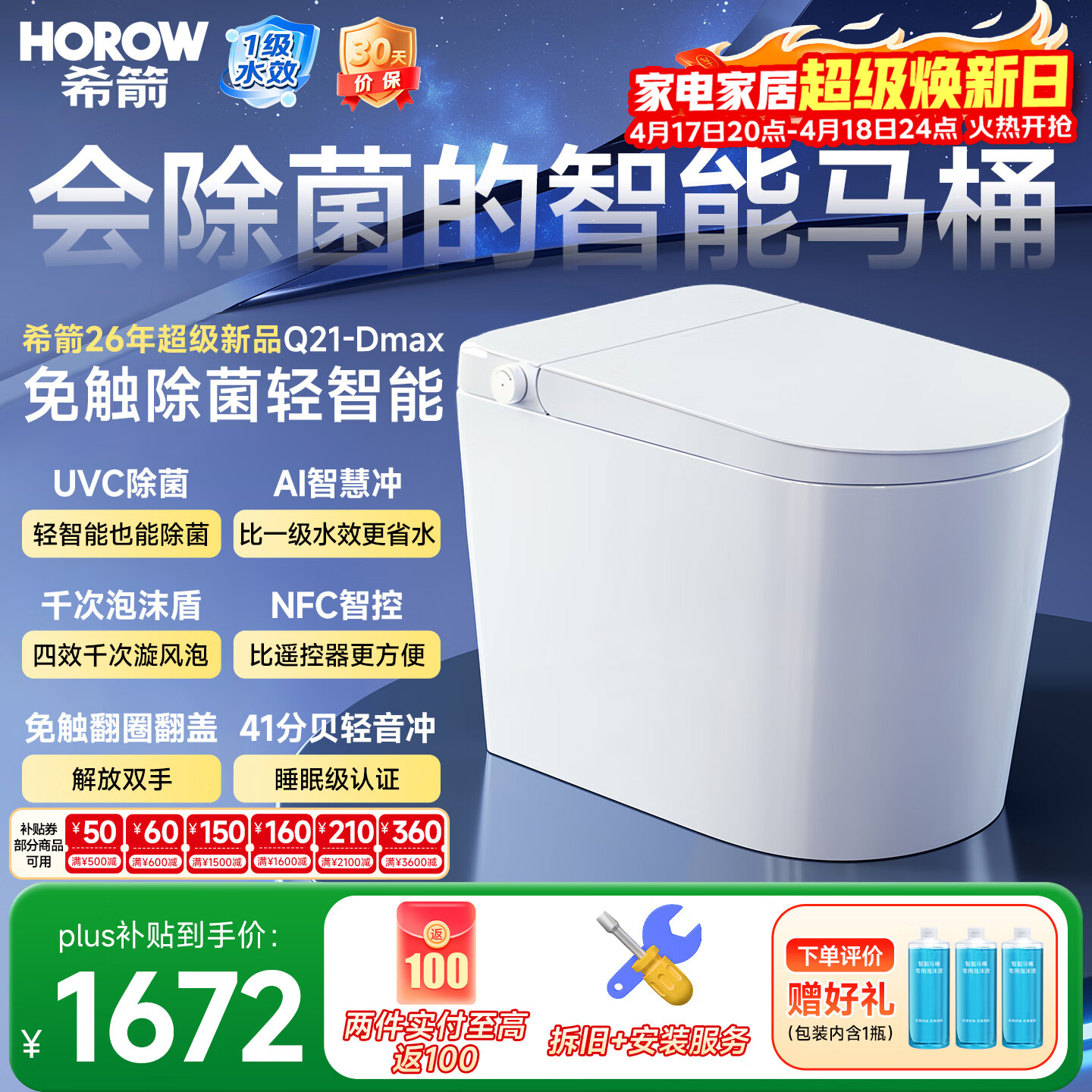 希箭(HOROW)【2026年新品】大冲力轻智能马桶脚感翻圈UVC除菌NFC泡沫盾Q21-D 【26年新品】Q21-D Max UVC陶瓷杀菌+NFC智控+Ai智慧冲 295-390坑距选300 305/300mm
