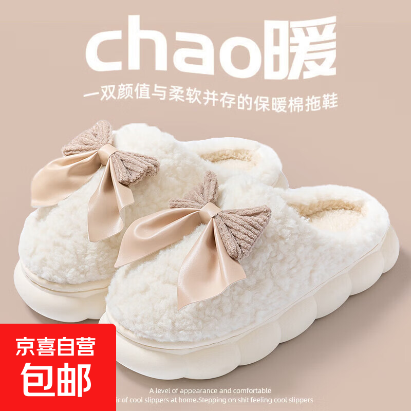 棉拖鞋女秋冬季2024新款家居家用情侣室内外保暖厚底防滑毛毛拖鞋 乳白色 38-39 【建议拍大一码】