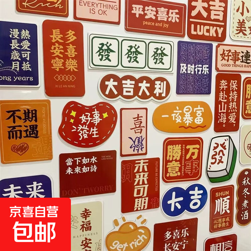 网红冰箱贴文字创意磁力贴个性喜庆家居装饰平安喜乐中国风软磁贴 款式随机 10个装