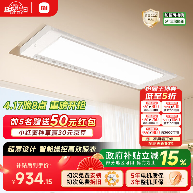 米家智能晾衣机Pro月光白 【国家补贴】小米电动隐形晾衣架超薄嵌入
