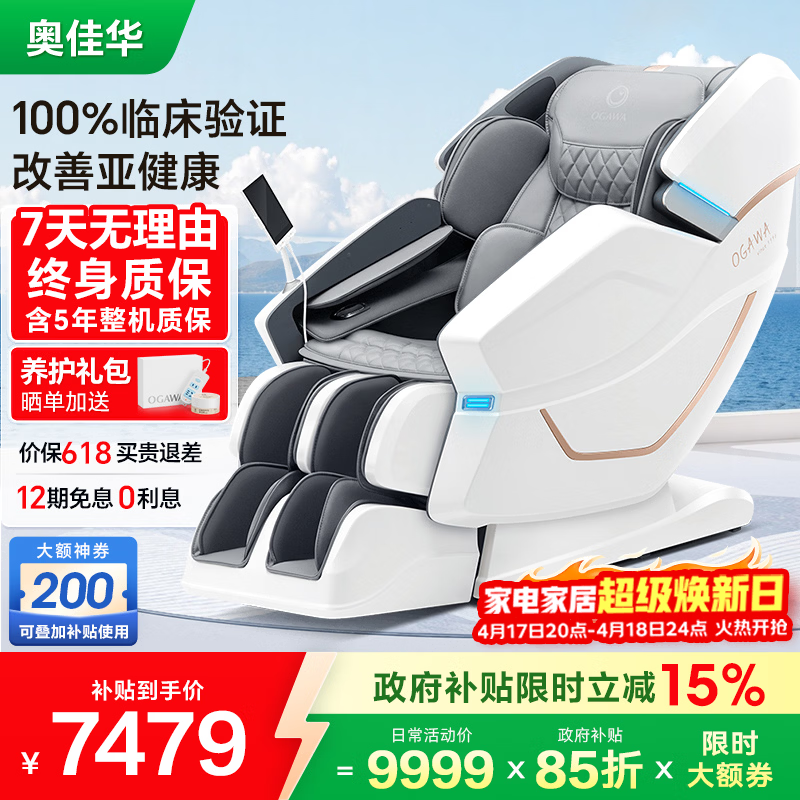 奥佳华(OGAWA)家电国家补贴太空舱按摩椅家用全自动全身按摩沙发多功能椅子4D机芯送父母家人老人礼物7608TEN+ 3.0皓月灰【京东专供】