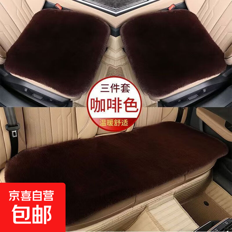 汽车坐垫冬季毛绒羊毛坐垫车垫保暖加厚屁垫通用单片靠背座垫 咖啡色 【车家两用】2个坐垫-超厚超软