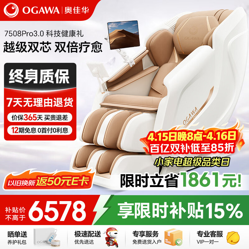 奥佳华【上市企业】按摩椅家用太空舱全身全自动按摩京东自营电动摇摇椅老人生日礼物7508Pro3.0丝绒鎏金