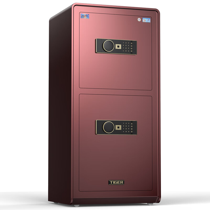 虎牌保险柜家用办公CSP认证全钢防盗指纹密码WiFi人脸识别入墙保险箱 150双门红 享跃触摸密码+TOUCH指纹
