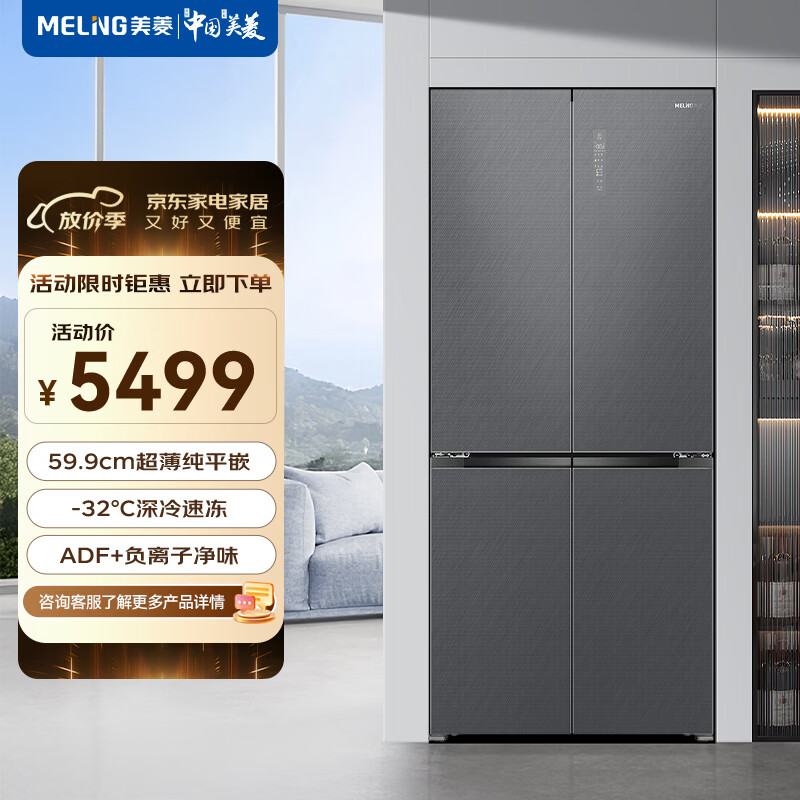 美菱(MeiLing)【真专供】502升幻影灰十字四门冰箱59.9cm超薄纯平全嵌京翼小魔盒京专BCD-502WSP9BZX-【专】