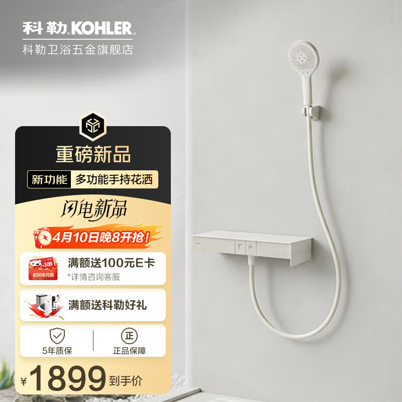 科勒(KOHLER)数显恒温淋浴花洒两出水雨神大置物台按键控制增压喷头浴缸花洒 雨神SH10Air 云缎沙