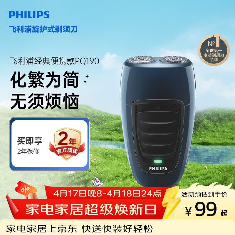 飞利浦电动剃须刀经典便携款 自研磨刀片刮胡刀 生日礼物送男生老公父亲 PQ190/16出行必备