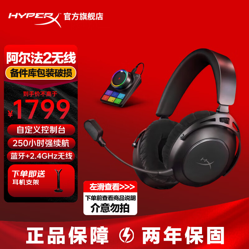 极度未知(HYPERX)【已拆封】飓风2飓风3云雀2阿尔法游戏耳机电竞耳机有线笔记本电脑手机fps吃鸡csgo游戏耳麦 阿尔法2无线【备件库包装破损】