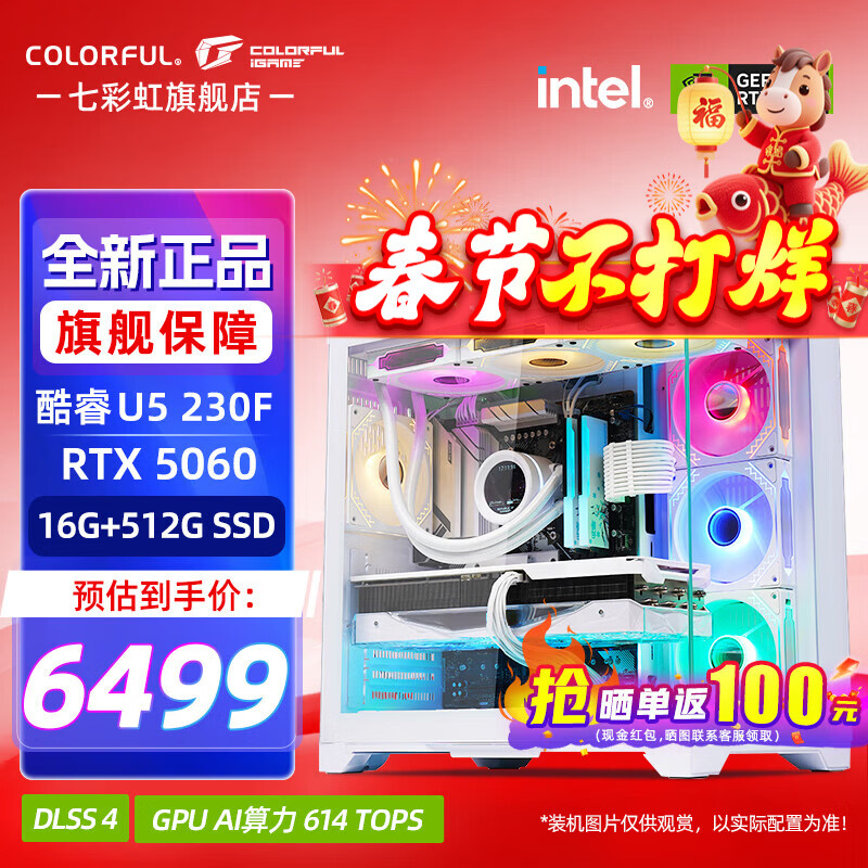 七彩虹(Colorful)酷睿15代U7 265KF RTX5060TI/5070TI/5080 5090D显卡 电竞游戏黑神话悟空AI设计台式电脑组装机 新品抢先版:U5 230F丨5060 官方全新保障