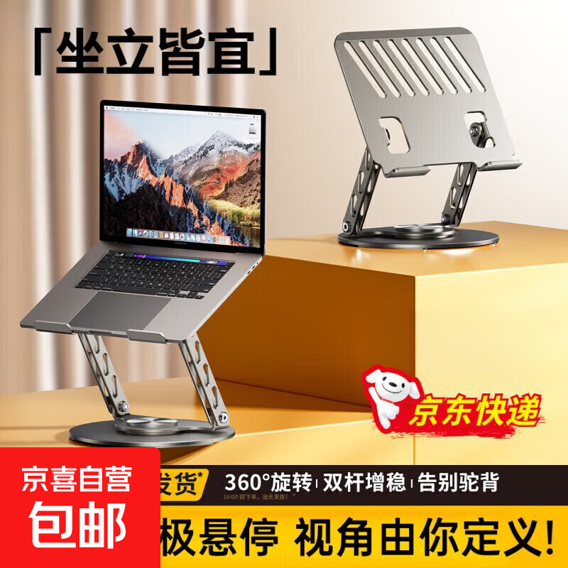 【JD快递】笔记本电脑支架便携折叠铝合金悬空升降散热器平板支架立式增高架 深空灰 | 360°无极旋转升降 | 全身碳素钢