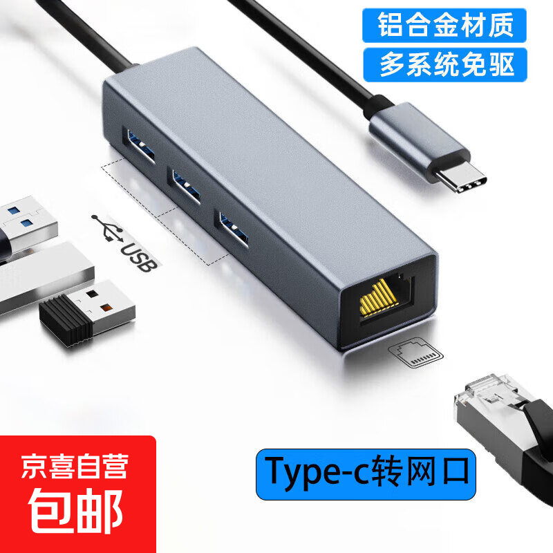 USB/Type-c双头拓展坞笔记本电脑多功能多读卡器集线器HUB多功能分线typec转接头多合一分线器usb 4合1【Type-c转3USB3.0+千兆网口】