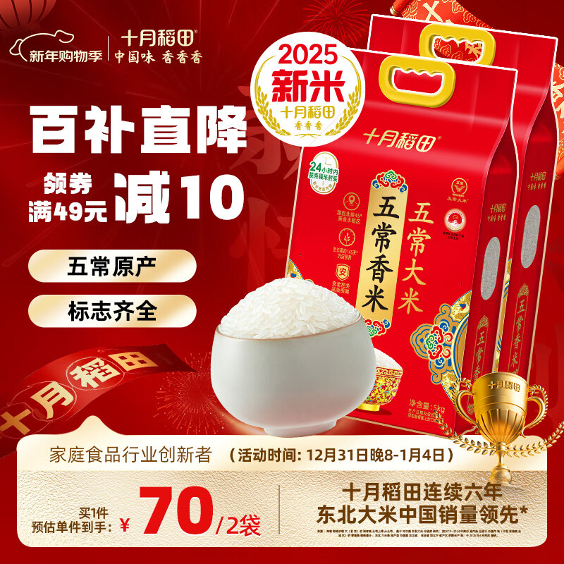 十月稻田【2025年新米】大米 五常香米 5kg*2袋