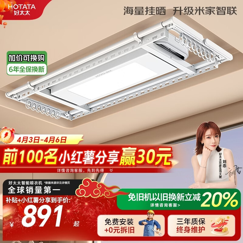 好太太(Hotata)超薄大晒量电动晾衣架智能隐形阳台晾衣机升降晾衣杆D10-ZM
