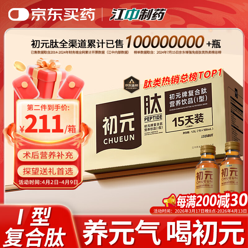 初元江中复合肽营养品I型术后放化疗滋补品送中老年长辈100ml*15瓶