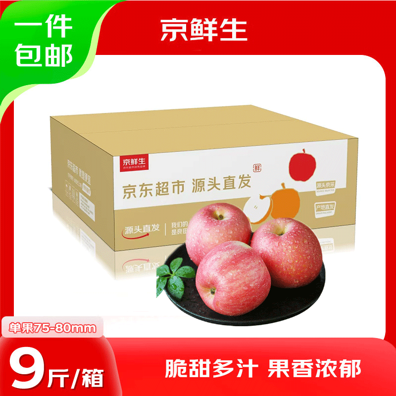 京鲜生山东烟台红富士苹果 净重9斤 单果75-80mm生鲜水果 源头直发 包邮
