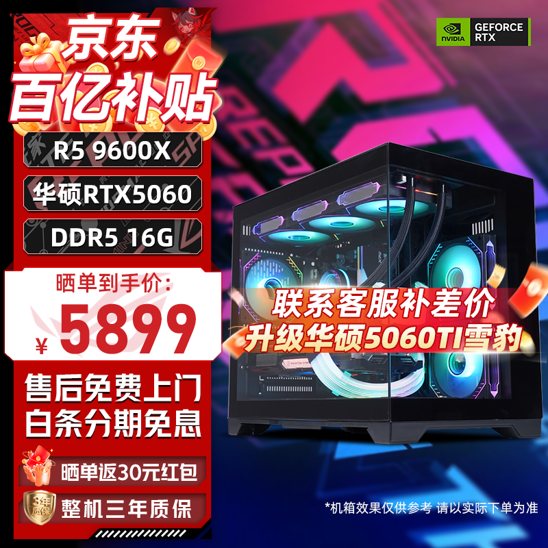 华硕(ASUS)rog全家桶R5 9600X主机R7 9700X电脑主机RTX5060Ti /RTX5070显卡组装电脑游戏5060主机电脑台式机 配置一R5 9600x丨16G丨RTX5060