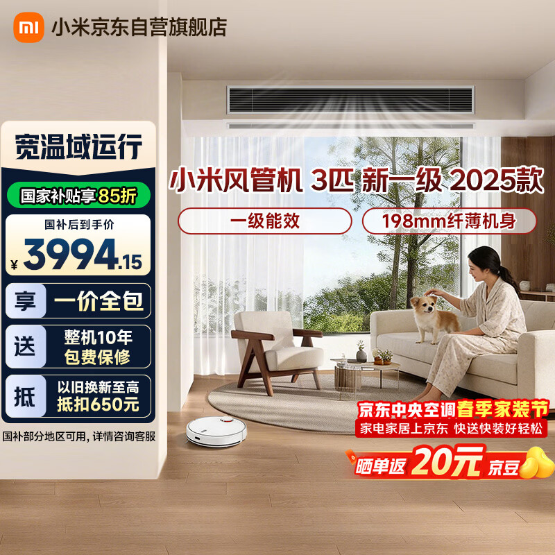 小米米家 中央空调 风管机 3匹 新一级能效 一价全包 75FW-OC20/N2B1 整机十年质保 SU7