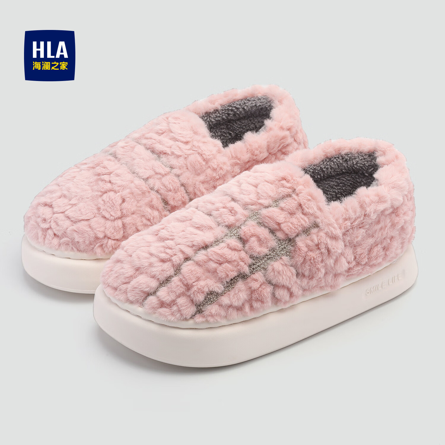 海澜之家(HLA)条纹男士棉拖鞋秋冬季室内家居家加厚毛绒厚底保暖情侣包根棉拖鞋 嫩粉 38-39 【适合37-38码脚】