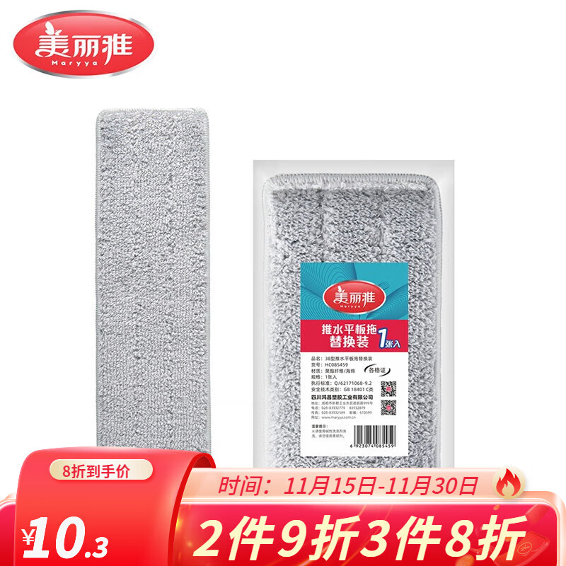美丽雅推水平板拖把免手洗懒人拖把挤水拖布墩布家用拖地神器干湿两用 38CM原装拖布1张