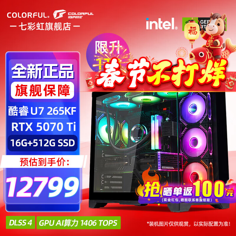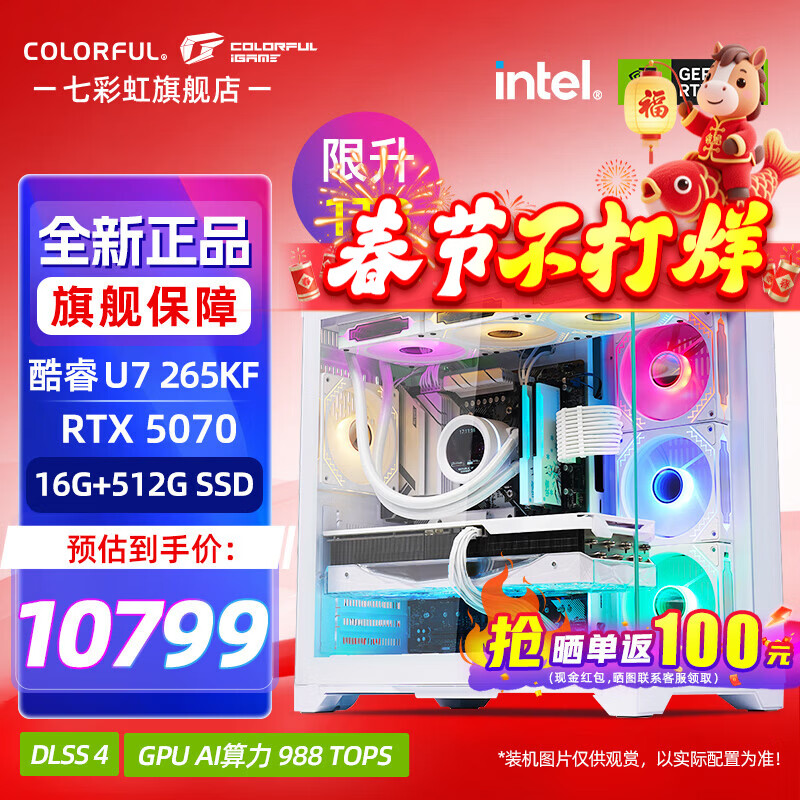 七彩虹(Colorful)酷睿15代U7 265KF RTX5060TI/5070TI/5080 5090D显卡 电竞游戏黑神话悟空AI设计台式电脑组装机 配一:U7 265KF丨1TB丨5070 官方全新保障