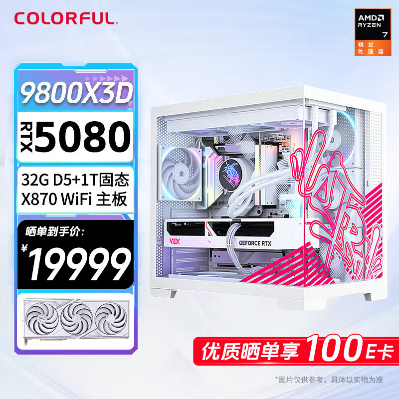 七彩虹RTX5080 5070 Ti主机AMD锐龙9800x3d台式diy组装电脑AI设计电竞游戏整机 配六:9800X3D+5080白火神主机