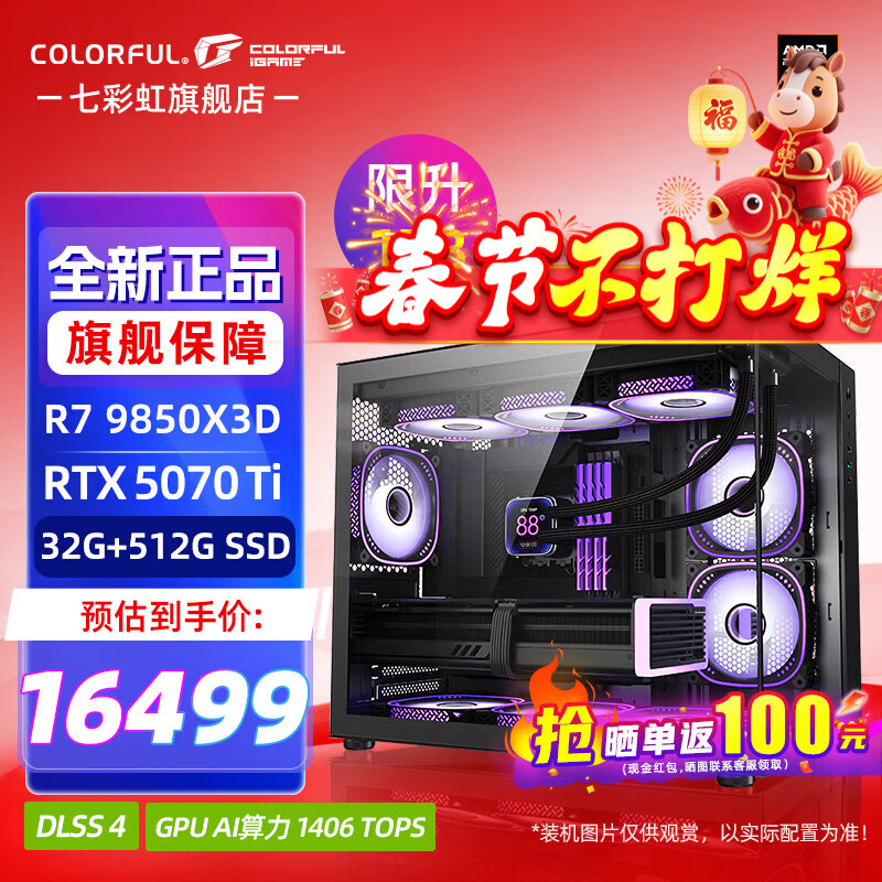 七彩虹海景房主机AMD锐龙R7 9800x3d搭5080/5070TI 5060TI显卡 千帧电竞 游戏直播AI主机 组装电脑 配八:R7 9850X3D丨32G丨5070TI 稀缺货源 全新原装