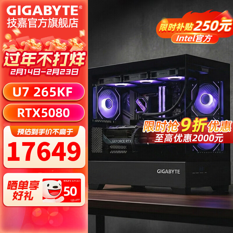 技嘉全家桶RTX5080/5070Ti/5060Ti/intel英特尔15代酷睿Ultra7 265KF电竞游戏发烧设计台式电脑主机 标准丨五:U7 265KF丨RTX5080