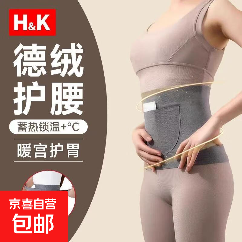 德绒护腰加口袋护腰双兜护腰带保暖发热暖肚护胃男女防寒月子护腰 肤色
